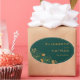 Pegatina Ovalada Moderno Boda retro esmeralda verde dorado floral