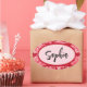 Pegatina Ovalada Name Sticker Personalized Pink Floral