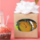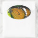 Pegatina Ovalada Naranja, mariposa negra y blanca en hojas