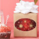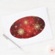 Pegatina Ovalada Navidades Copos de nieve dorados con fondo rojo