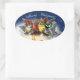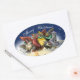 Pegatina Ovalada Navidades de pájaros que se encargan del transport