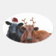 Pegatina Ovalada Navidades vacacionan vacas en Santa Hat y Antlers