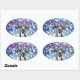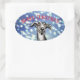 Pegatina Ovalada Noche estrellada de marionetas, Feliz Navidad