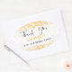 Un pegatina para una fiesta de cumpleaños glamurosa y femenina de 21 años (o de cualquier edad). Un elegante fondo blanco con un falso confeti dorado. El texto: Gracias está escrito con un gran guión moderno de estilo escrito a mano. Personalizar y agregar un nombre y edad 21