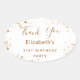 Un pegatina para una fiesta de cumpleaños glamurosa y femenina de 21 años (o de cualquier edad). Un fondo blanco y elegante con un polvo purpurina de oro oscuro. El texto: Gracias está escrito con un gran guión moderno de estilo escrito a mano. Personalizar y agregar un nombre y edad 21