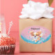Un adorable ilustracion de perro del papilón kawaii de color rosa y azul, con un juguetón cachorro de papilón retozando con brotes de diversión. Personaliza con un nombre.
