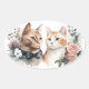 Pegatina Ovalada Pareja De Gato De Color De Agua En Blanco
