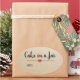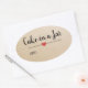 Pegatina de "pastel en un tarro" ovalado moderno con una letra de escritura negra en un fondo de papel kraft adornado con un lindo corazón rojo. Texto personalizado.