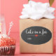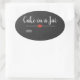 Torta de oval moderna en un tarro de pegatina con una letra de escritura blanca sobre un fondo de pizarra adornado con un lindo corazón rojo. Texto personalizado.