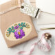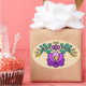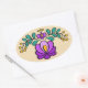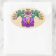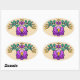 Pegatina Ovalada Patrón de bordado húngaro, "Matyó" - violeta