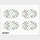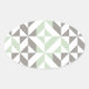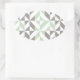 Pegatina Ovalada Patrón de cubo geométrico verde sabio y plateado