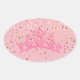 Pegatina oval mostrado con una tiara rosada sobre las estrellas doradas impreso. Fondo rosa. Personalizar este elemento y agrega texto o compra tal cual.