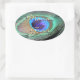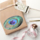 Fotografía festiva del ojo morado y turquesa de una pluma de pavo real brillante. El mensaje del sello del pegatina dice "Mardi Gras" pero las palabras pueden ser personalizadas en los sellos de la etiqueta. Haga especial fiesta de celebración favorece las marcas de la etiqueta de regalo con su propio texto e imágenes usando la opción "Personalizar It" para vacaciones personalizadas y ocasiones especiales de la vida pegatinas temática vacaciones regalos de arte!