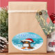 Los pegatinas ovales del pingüino de las Felices Navidad ofrecen un fondo decorativo de la turquesa con nieve y los copos de nieve, un pingüino feliz que sostiene un bastón de caramelo colorido que lleva un gorra de Santa. El texto azul y blanco decorativo es Felices Navidad. Hay disposición del texto para el nombre de su niño o cualquier texto que usted quiera. ¡Regalo perfecto para el navidad que almacena la embutidora!