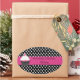 pegatinas ovalados de bonito, con fondo de polka blanco y negro y una atrevida banda rosa, a lo largo del medio, con un quequitos caprichoso, a la izquierda. El texto en negro es totalmente personalizable para tu negocio. Ideal para panaderías, panaderías y decoradores de pasteles, para usar como focas en cajas de pasteles y otros empaques. Personalice su negocio.