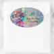 Pegatina Ovalada Pequeño elfo de los hongos salva el monograma de l