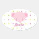 Pegatina Ovalada Personalizado Elefante Bebé Rosa