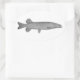 Este pegatina oval de pesca de agua dulce presenta un ícono vintage de lucio del norte. Un importante pez de agua dulce en Norteamérica, el alimento del lucio al ejecutar ataques relámpago contra peces más pequeños y otras fuentes de alimentos. Este cazador cauteloso está relacionado con el pulmón y el pickerel.