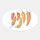 Estas pegatinas ovaladas presentan un patrón ilustrado de pimientos rojos, naranjas y amarillos coloridos. Disponible también en otras formas. Derechos de autor de la obra: Dominic White. Reservados todos los derechos.