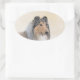 Pegatina Ovalada Pintura de Collie (Rough) - Arte de Perro Original