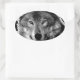 Pegatina Ovalada Pintura de Lobo Blanco y Negro