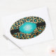 Pegatina Ovalada PixDezines vintage chita verde azulada