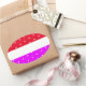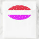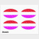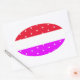 Pegatina Ovalada Polka brillante divertida con franjas blancas rosa
