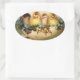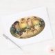 PEGATINA OVALADA POLLOS CON FLORES BLANCOS AZULES EN HUEVOS ORIENTA