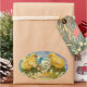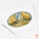 PEGATINA OVALADA POLLOS, FLORES, HUEVO ORIENTAL EN DERRAMES AZULES