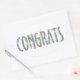 Mosaico, gráfico, de la palabra, "Felicitaciones" - mostrado en brillo, colores de, turquesa, azul, blanco, bronce, negro, verde y plata.