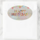 Pegatina Ovalada Purpurina y luces Feliz cumpleaños