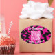 This lost found sticker has a cute, hot pink and black design, with retro lines, switch the qr code to your contact details.