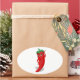 Caricatura de pimienta roja y caliente. Diseño original. pegatinas personalizados ovales. Idea de regalo para los amantes de las comidas picantes.