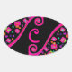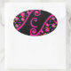PEGATINA OVALADA ROSA FUCHSIA BLACK ABSTRACT DECO MONOGRAM