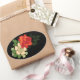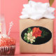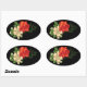 Pegatina Ovalada Rosa Roja y Margaritas Fondo Negro