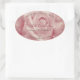 Pegatina Ovalada Rosa rosa con hojas de palma de Borgoña