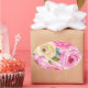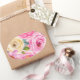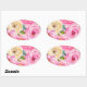 Pegatina Ovalada Rosase al acuarela en rosa y crema con brillo rosa