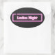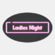 Las palabras Ladies Night en neón rosa brillante en una pegatina ovalada.