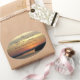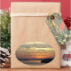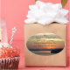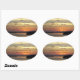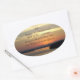 Oval pegatina para uso en libros, cuadernos y más y presenta la fotografía escénica de una espectacular puesta de sol naranja sobre el agua junto con las palabras inspiradoras de la Oración de la Serenidad.