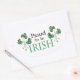 Una hoja de Pegatinas divertidos con hojas verdes de Shamrock y 'Orgulloso de ser irlandés' en guiones celtas, en un fondo blanco que puedes cambiar si lo deseas (el Naranja es una buena alternativa). Parte de la colección "Shamrock" de Posh & Painterly.