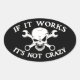 " Si trabaja no está loco." El texto con el cráneo y cruzó las llaves, negro y blanco, en las camisetas, suda, las tarjetas, pegatinas, swag del regalo.