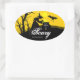 Una bruja malvada y su caldero, un murciélago negro, una valla de piquetes y la silueta de árbol desnudo contra un cielo espeluznante estos grandes pegatinas ovales de la fiesta de Halloween. Las palabras "Comer, beber y tener miedo" aparecen y tu nombre o deja esa sección en blanco. COINCIDIENDO elementos de nuestra colección.