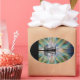 Disfrute de este diseño gráfico de una canasta de golf en disco con cadenas y un fondo colorido.
