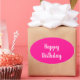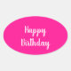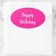 Pegatina Ovalada Simple Happy Birthday Hot Pink
