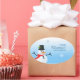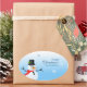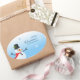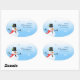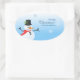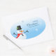 Pegatina oval Snowman con un lindo muñeco de nieve con una bufanda roja y un gorra negro sobre un fondo azul que se desvanece, que disfruta de la temporada invernal mientras los copos de nieve de diferentes formas siguen cayendo. Ideal para Navidades o cualquier otra ocasión. Este pegatina también está disponible en otras formas. © Morning 6