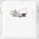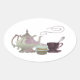 Pegatina Ovalada Tetera rosa, té y pasteles