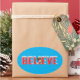 Pegatina Ovalada Texto rojo CREE con muñeco de nieve
