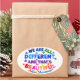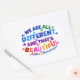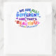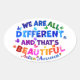 Cita inspiradora de "Todos somos DIFERENTES y eso es BELLO" con singulares rompecabezas de autismo, y coloridas mariposas volando en el fondo para apoyar y defender la conciencia del autismo.