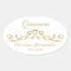 Pegatina Ovalada Torbellinos dorados, Tiara Quinceanera