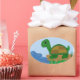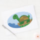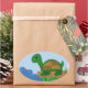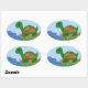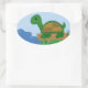 Una pequeña y fresca tortuga verde con una sombra de caparazón marrón preparándose para darse un chapuzón en el estanque.